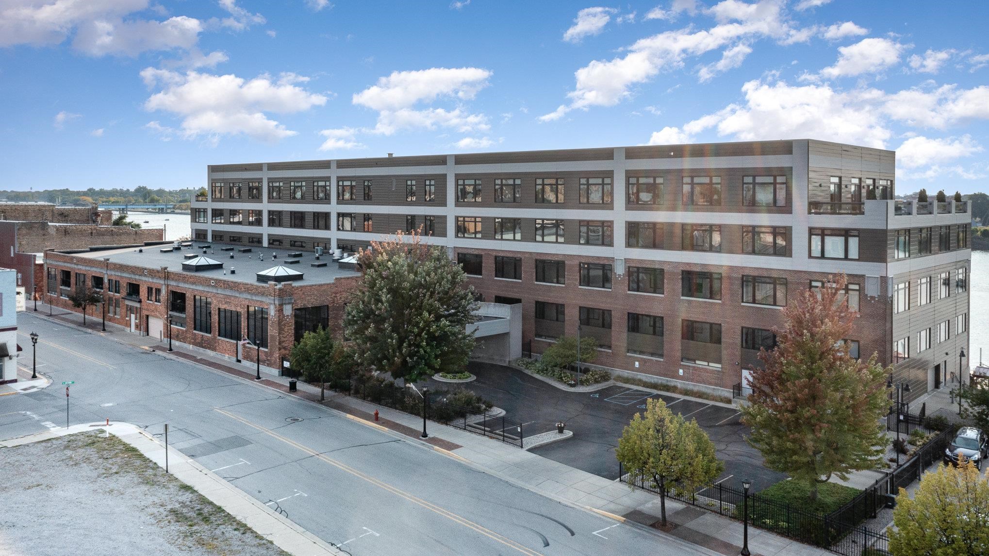 Welcome to The Boathouse, a stunning end-unit condo offering unparalleled northern river views and contemporary elegance. This exceptional residence is designed for both comfort and style, featuring a spacious layout with a wall of sliding glass doors that open from the primary bedroom to a generous 17 x 15-foot balcony. The primary bedroom is a true retreat, complete with a large walk-in closet, luxurious bath featuring a steam shower, built-in dressers, and heated bathroom floors. Enjoy seamless indoor-outdoor living as you step onto the balcony, outfitted with an entertainment setup including a Sub-Zero refrigerator, grill, and ample storage. The balcony is the perfect vantage point for watching freighters, recreational traffic, and bridge openings. Inside, the condo exudes a bright and airy atmosphere, thanks to walls of windows in both the living and dining areas. The open floor plan is complemented by porcelain floors, elegant maple cabinetry and woodwork throughout, topped with polished quartz countertops adding a touch of sophistication. The centrally located kitchen features a long island with bar stools and heated floors, making it ideal for cooking and socializing. A versatile third bedroom serves as a flex space, perfect for use as an office or den, adapting to your needs. The Boathouse also offers a range of amenities designed for convenience and enjoyment. Outside the condo, residents can take advantage of a gated entrance, a spacious lobby, and a large gathering room perfect for parties and celebrations. Additional amenities include a kitchen for food preparation or catering, a small meeting room, a library, a craft room, and a woodworking shop. Two assigned parking spaces are provided in a large, heated garage, along with private storage space adjacent to the parking area. Plus, you'll have access to a boat slip, making riverfront living even more enjoyable. Experience modern luxury with breathtaking river views, offering a unique and inviting living experience. Don't miss this opportunity to make it your own!